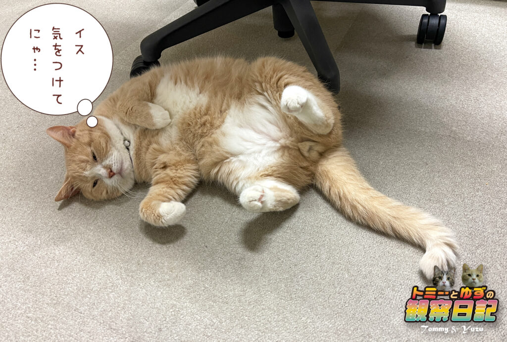 お願いだからイスの後ろに寝ないでくれる?