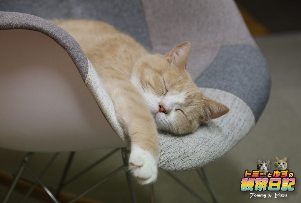 片手は完全にチェアからはみ出ています…